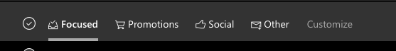 Included in the available tabs are Focused Inbox, Microsoft’s “Priority Inbox” clone, along with Promotions, Social, and Newsletters. When you choose your tabs and click Save, you’re presented with your new inbox with the allocated tabs plus the category “Other” for anything that doesn’t fall under the chosen groupings.