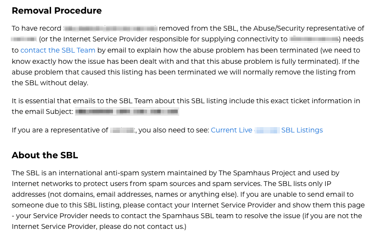 In addition, the page also provides clear delisting instructions and some additional insight about the pertinent blocklist: